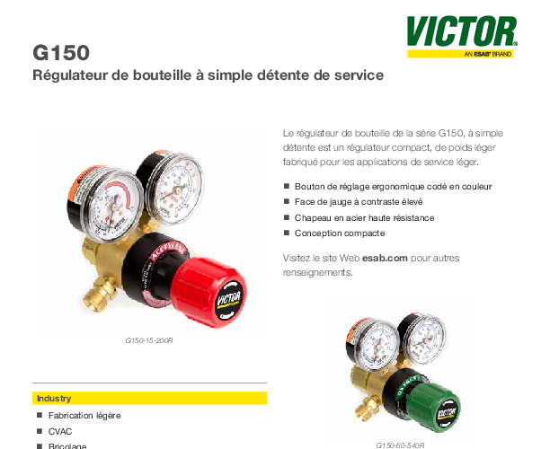 The G150 series cylinder regulator is specifically designed for light duty applications, offering compactness and lightweight. With an ergonomic adjustment knob in easily identifiable colors, this regulator provides ease of use. The gauge face exhibits high contrast, ensuring clear visibility. Its bonnet is constructed from high strength alloy, ensuring durability. In addition, its compact design enhances its overall efficiency.
